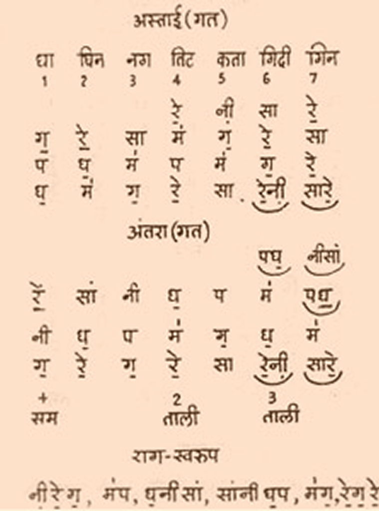 Alcuni principi fondamentali della musica indiana contemporanea, quali il concetto di rasa (sapore, emozione, stato d’animo) sono già codificati nel principale trattato di drammaturgia indiana, il Bharata Natya Shastra, che dedica intere sezioni alla musica vocale e strumentale destinata all’accompagnamento degli spettacoli teatrali.